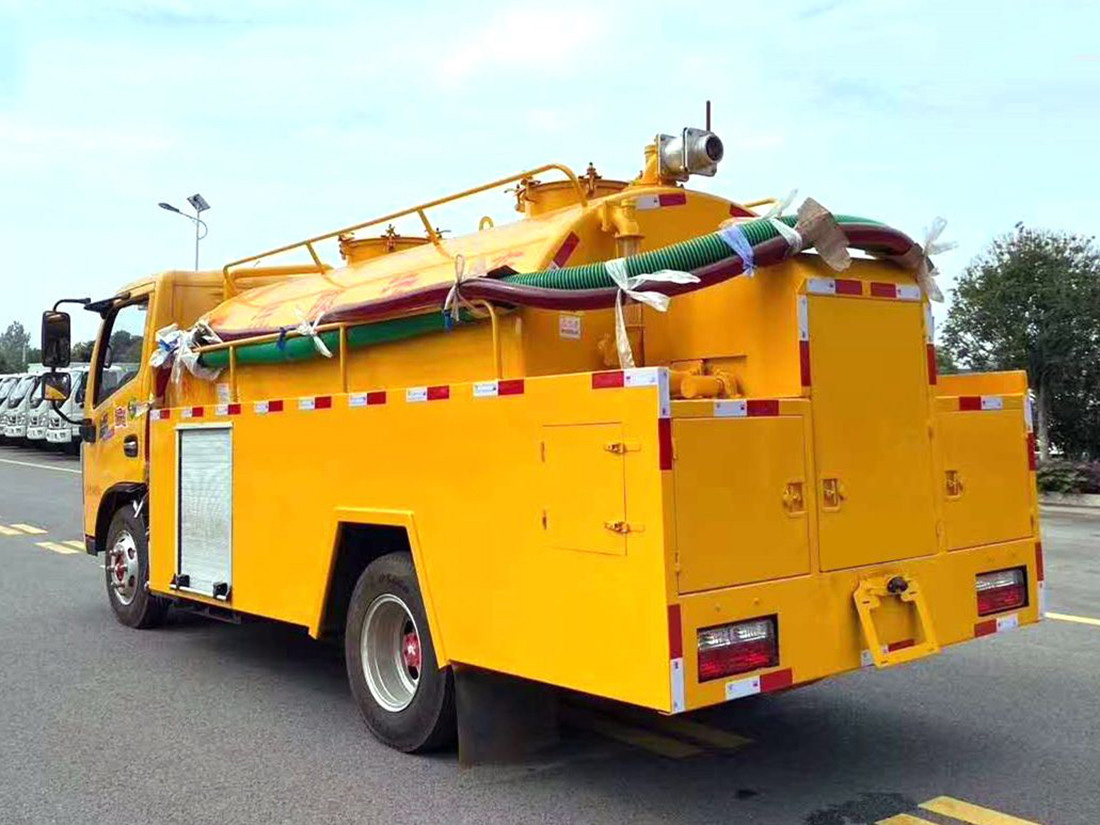 清洗部分:1.8方水箱,采用4mmQ235優(yōu)質(zhì)碳鋼板,水箱兩側(cè)消防接口進(jìn)水,工具箱一個(gè)。采用德國品浮高壓泵170升流量,24兆帕,配60米內(nèi)徑19#高壓管,10個(gè)大小不同噴頭一套, 后置式清洗卷盤,帶淋管裝置(用于淋洗高壓管疏通管道過后上面殘留的污物),帶氣吹水功能(用于吹出每次高壓管工作完以后內(nèi)部殘留的水漬,防止天冷結(jié)冰影響下次使用)